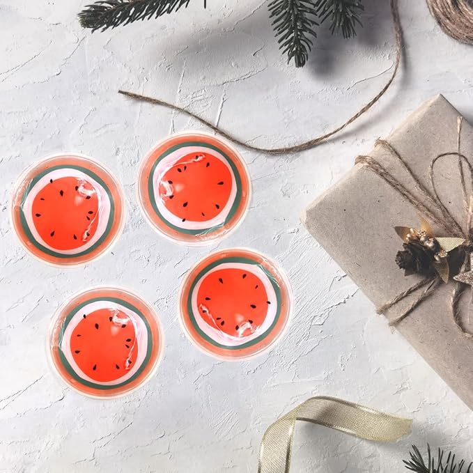 Reusable Gel Eye Ice Pack, Round Eye Cold Pads, Cooling Eye Masks for Eye Strain, Eye Swelling, Eye Redness, Puffy Eyes, Dark Circles, Smooth Fine Lines, and Eye Recover Surgery (Watermelon & 4PCS)