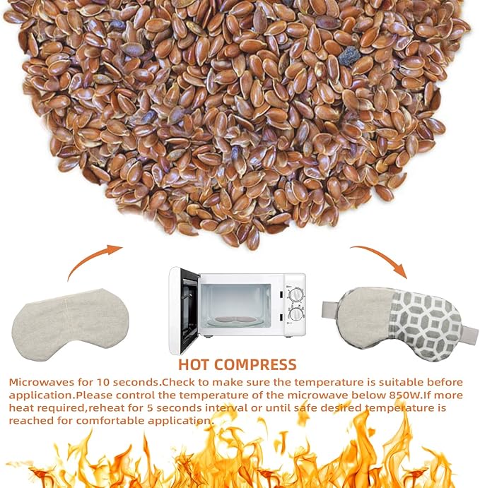- AS A SLEEP EYE MASK--Remove the inner Hot/Cold Pack,the soft sleep mask conforms to the contours of your face and perfectly blocks out the light. The flaxseeds bag is made up of natural flaxseeds with natural Lavender aroma, give you a whole day comfort. Perfect for yoga, meditation.