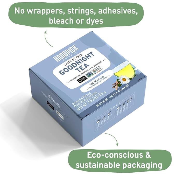 HANDPICK, Good Night Tea Bags (100 Count) Night Time Herbal Tea | Caffeine Free, Gluten Free | Floral Blend - Lavender, Chamomile, Peppermint | Natural Tea, Perfect for Bedtime