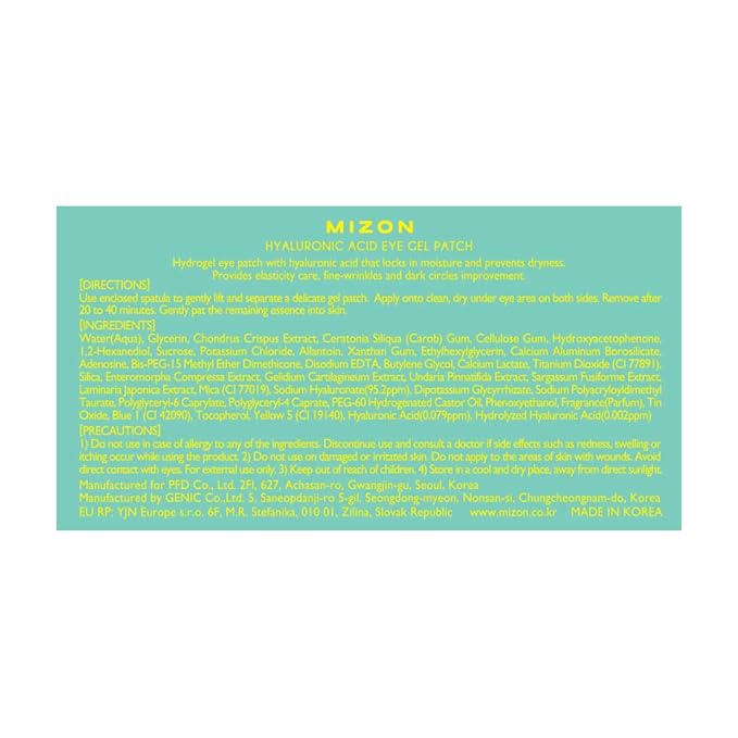 - [Hyaluronic Acid Eye Gel Patches] Concentrated high-quality Hyaluronic Acid formula on an eye patch. Intensive care for the skin under your eyes.