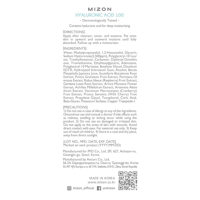 - [Hyaluronic Acid 100 Ampoule] Enriched Ampoule with Hyaluronic Acid that reduces wrinkles. Mizon's Hyaluronic Acid 100 keeps your skin supple protecting it against harm.