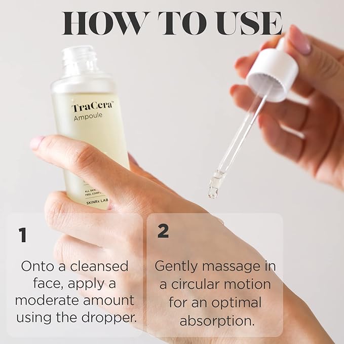 - PERFECT 4-STEP MELANIN CARE: TraCera Ampoule delivers moisture to your dry skin and helps improve its tone. SKINRx Labs' unique formula contains Vitamin C derivate that helps clean your skin while fermented ceramide nourishes dry skin cells. Vitamin C serum helps regulate melanin to hide spots, blemishes, and freckles.