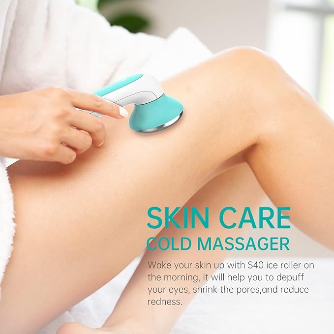 SOICY S40 Metal Ice Roller for Face Under Eye Ice Face Roller Massager for Migraine Pain Skin Care Tools for Whole Body Minor Injury Cold Compresswith 2 Stainless Steel Replacement Heads Blue