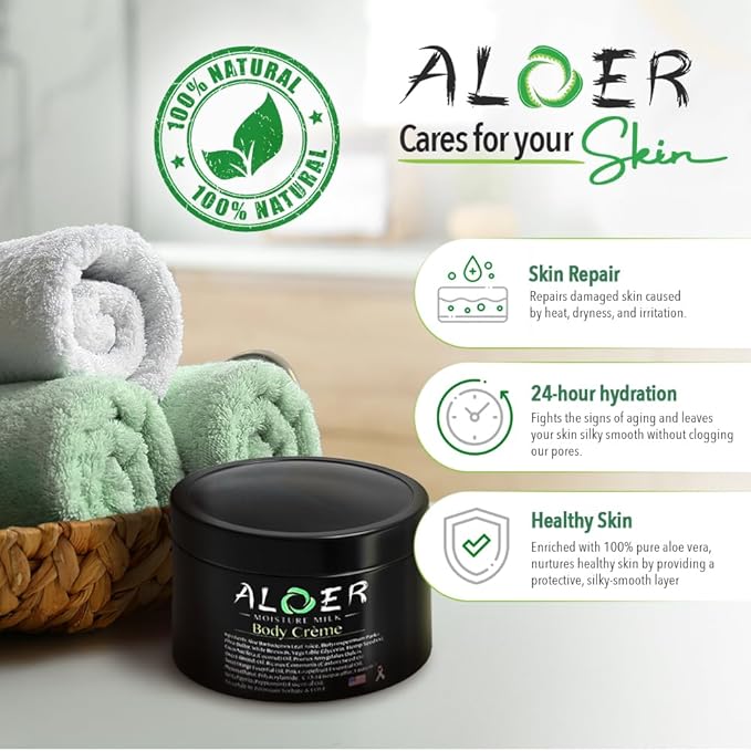 - Glowing skin repair -ALOER Moisture Milk Body Creme is an all-natural 100% pure aloe skin nourisher, It protects the skin, leaving it silky smooth without clogging your pores. ALOER Moisture Milk Body Creme can also be used as a leave-in conditioner or moisturizer for your scalp, lips, or beard, hairline, and edges. Promotes healing and soothes bruises, liposucion and cosmetic surgery.