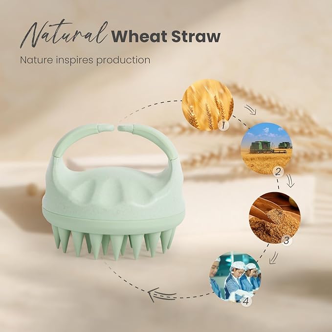 - AIMIKE Shampoo Brush: Our scalp massager bristles are made of soft silicone to protect your scalp. The rest is crafted from wheat straw, a by-product of wheat production, which is a zero-waste material, no harm to human body