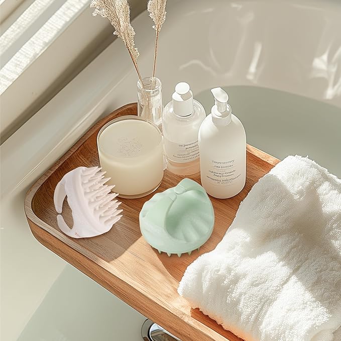AIMIKE Scalp Massager Shampoo Brush, Soft Silicone Scalp Brush Hair Scrubber, Hair Washing Scalp Exfoliating Brush for Dandruff, Head Scrubber for Wet Dry Hair of Women Men Kids, Beige & Green