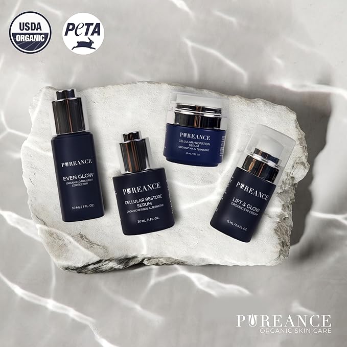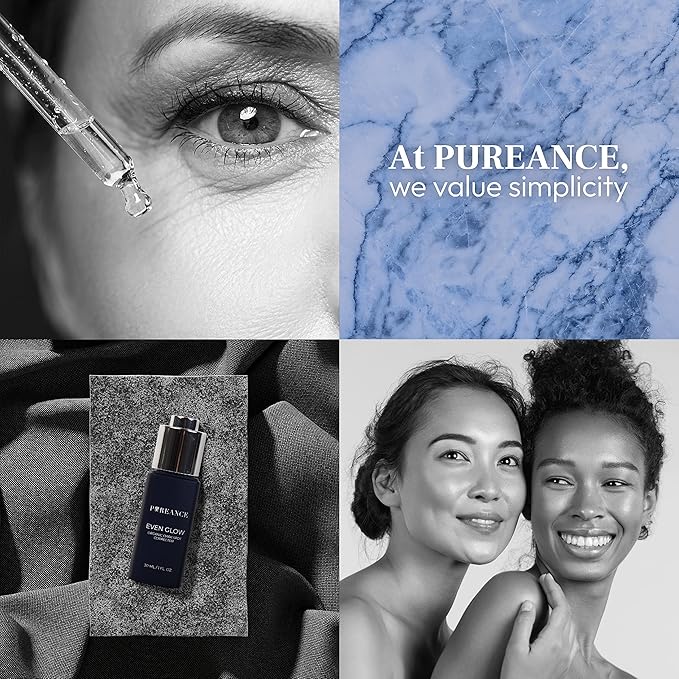 - Doctor-Approved EVEN GLOW by PUREANCE helps fade discoloration, dark spots, evens skin tone, and it brightens and lightens for a more youthful appearance. But it doesn’t stop there. It firms, plump wrinkles, protects DNA, hydrates, soothes irritations, repairs damage, stimulates collagen and elasticity while nourishing like nothing else!