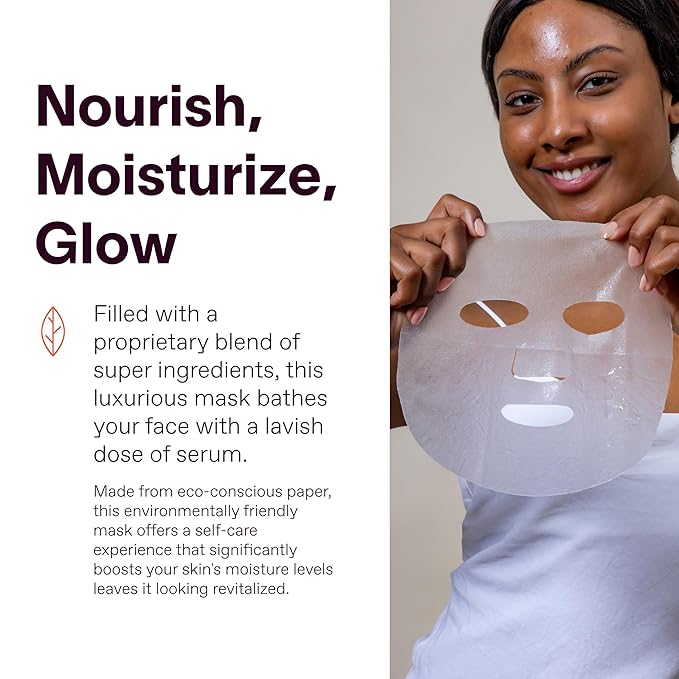 - Anti Aging Sheet Mask: Made with Niacinamide + Provitamin B5, this sheet mask activates collagen production, and helps smooth wrinkles and signs of aging giving your skin a bright and dewy look.