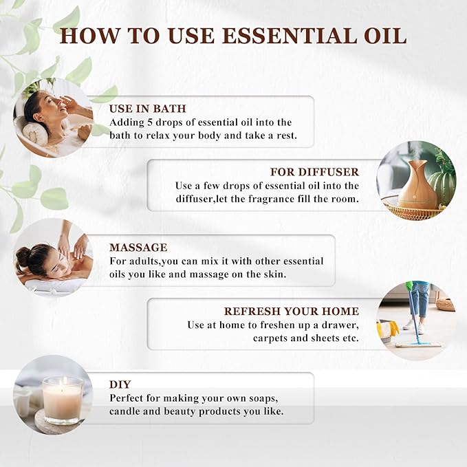 - Multiple Uses: Great for diffuser, DIY soap, candle making, bath bombs etc. Add some fragrance to your daily routine and fully enjoy the fun of the benefits of aromatherapy.