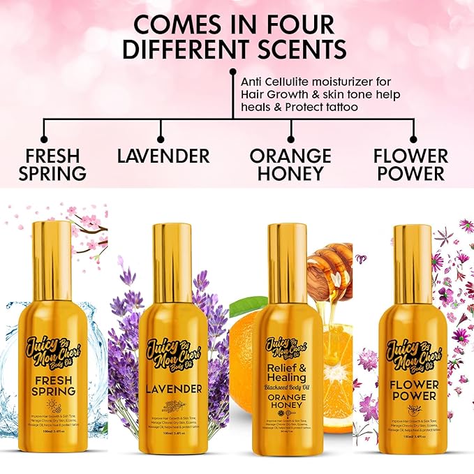 - ✅ DAY AND NIGHT CARE- This Juicy by Mon Cheri Body Oil can be used in the morning and at night.