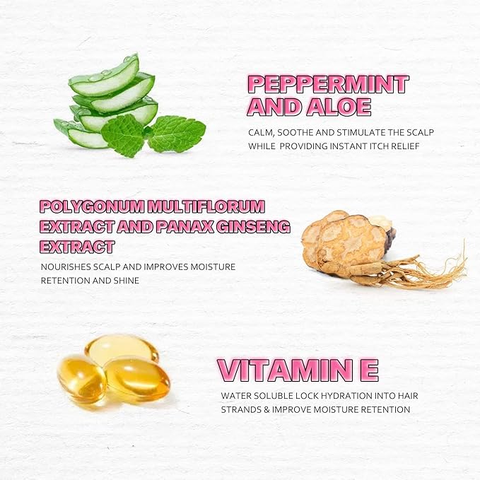 - 【Healthy Ingredients】: APOLYGONUM MULTIFLORUM Extract, PANAX GINSENG Extract: Nourishes scalp and Improves moisture retention and shine. Vitamin E: Water soluble lock hydration into hair strands & improve moisture retention.