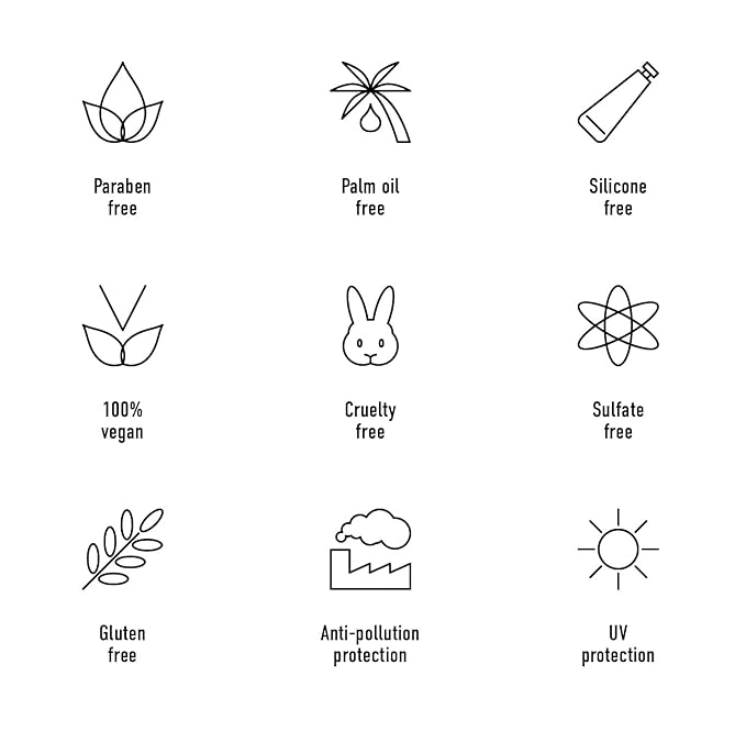 - Made in Canada, UV protection, Anti-pollution protection, 100% vegan, paraben free, silicone free, cruelty free, palm oil free, gluten free