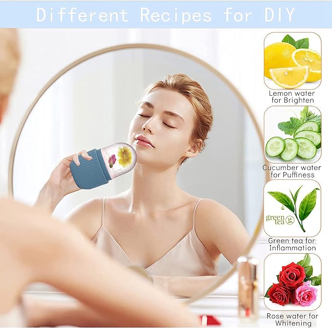 - ๐ใIMPROVE SKINใFacial ice rollers are very useful for improving skin conditions. You can use whitening lemonade, green tea, relieve the pressure of cucumber water, coconut milk, etc. to improve the skin, thereby creatively customizing recipes according to your skin needs.
