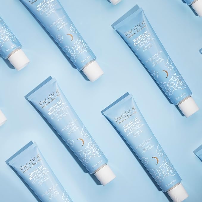 Pacifica Wake Up Beautiful Cleansing Balm & Makeup Remover - 2-in-1 Waterless Face Cleanser for Dry & Sensitive Skin, Hydrating No-Rinse Balm Dissolves Stubborn Makeup, 2.5oz