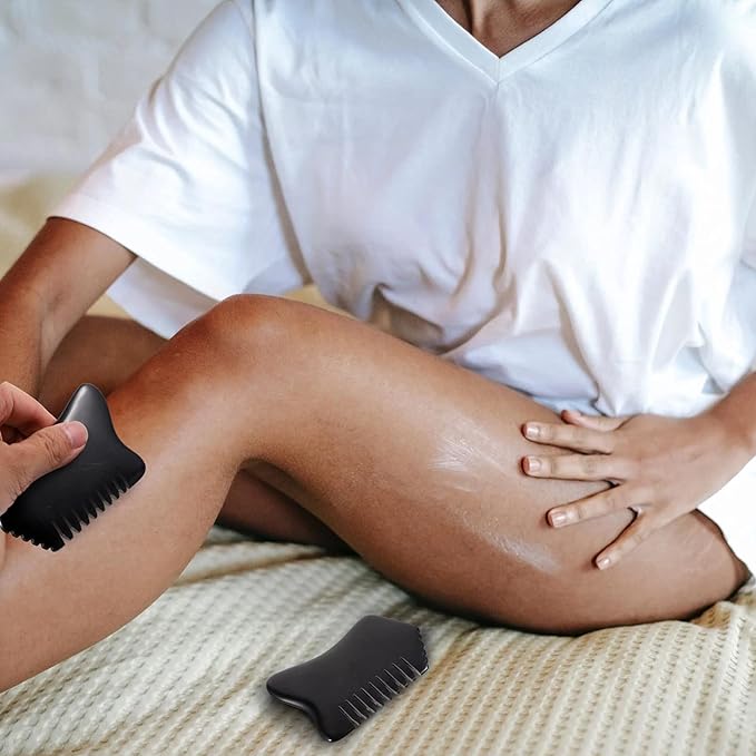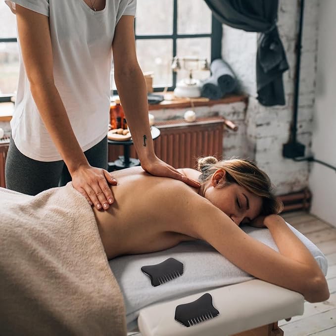 Facial Reflexology Tools Neck Massagers Jade Stone Massage Comb 1Pc - Guasha Scalp Comb, Handheld Scraping Massage Tool for Head Caring, Relax (Black) Facial Reflexology Tools Neck Massagers