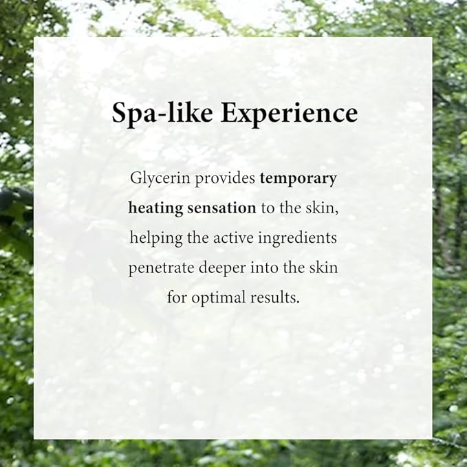 - WARMING SENSATION: Glycerin adds temporary warming sensation when applied to act as a steam mist in esthetician's clinic. By adding subtle heat, it activates to help purge out impurities and congestion deep within pores.