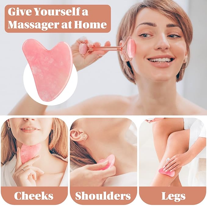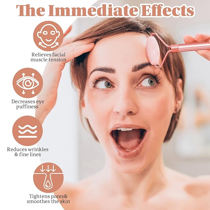 - 【The Effect of Jade Roller and Gua Sha Set】 Jade Massage roller can relieve facial muscle tension, decrease eye puffiness, reduces wrinkles & fine lines, tighten pores and smooth the skin.