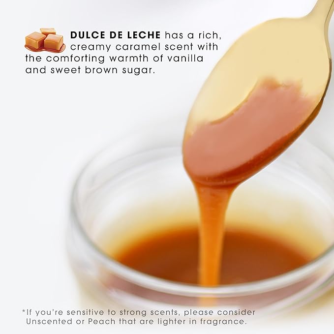 - DULCE DE LECHE has a rich, creamy caramel scent with the comforting warmth of vanilla and sweet brown sugar.