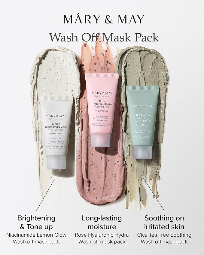 Mary&May Vegan Rose Hyaluronic Hydra Wash Off Mask - Rose Petal and Damask Rose Water Cream Mask for Moisturizing, Exfoliation, and Blackhead Removal - Korean Skincare, 1.01oz.