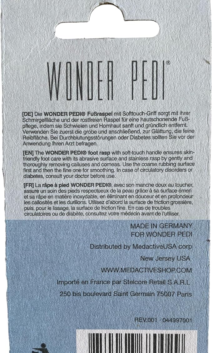 - WONDER PEDI PREMIUM CALLUS REMOVER, foot file dead skin remover for feet. Crafted with precision and attention to detail, our foot rasp is proudly made in Germany from the best quality stainless steel. You can trust the durability and effectiveness of professional foot file callus remover for feet and cracked heel repair