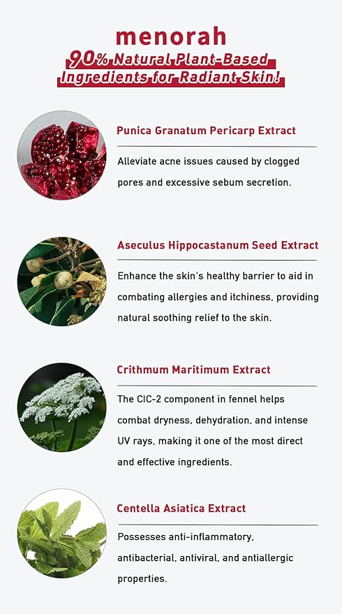 - 【Active Ingredients】: Punica Granatum Pericarp Extract / Aseculus Hippocastanum Seed Extract / Crithmum Maritimum Extract / Centella Asiatica Extract