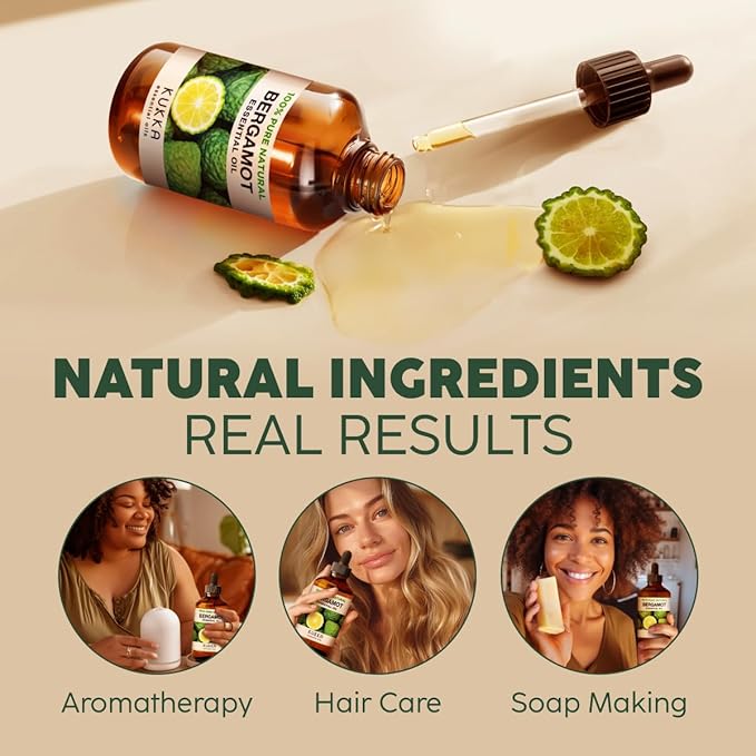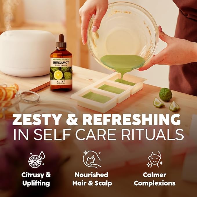 Kukka Bergamot Essential Oil for Diffuser and Skin - 4 Fl Oz - 100% Pure Natural Bergamot Oil for Aromatherapy, Hair Shampoo ,Bath Bomb & Soap Making Scent DIY