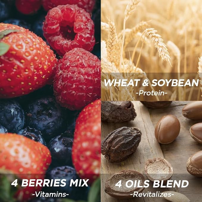 - 4-BERRY COMPLEX: Features a blend of raspberry, strawberry (rich in biotin), acai, and amla for superior hydration, protein, and vitamin balance.