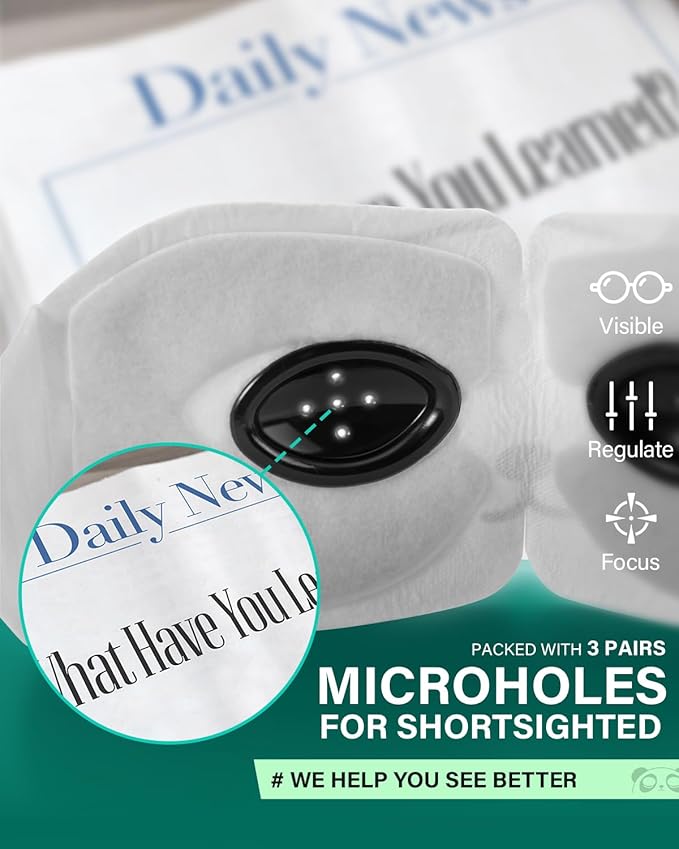 - 【3 Pairs Miroholes for Shortsighted】No worry for couldn't see anything while wearing eye mask, even if you have the shortsighted, we've got you covered. Using the microholes focusing method, you can see more clearly through the small holes, regulate your vision range, allows you to move easily even after taking off your glasses. This is only an additional upgrade feature to enhance user experience.