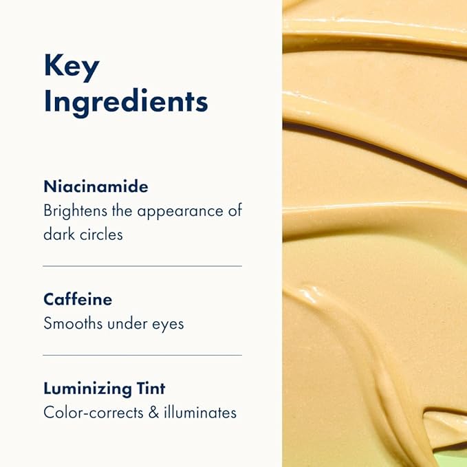 - ๐ KICKSTART YOUR MORNING WITH BRIGHT EYES: Meet the illuminating eye cream that features niacinamide, caffeine, and a luminizing tint to help visibly improve dark circles after multiple applications.