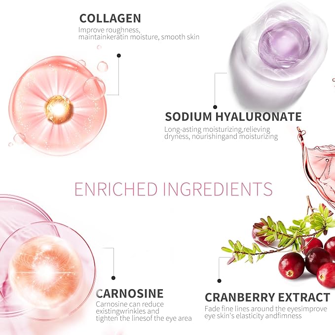 - Product Efficacy: MOND'SUB Cranberry Crystal Eye Mask This eye mask can gradually hydrate and moisturize your skin around eyes with cranberry and carnosine,reduce crow's feet, fine lines and wrinkles,make eye skin more smooth and firming.