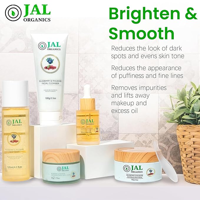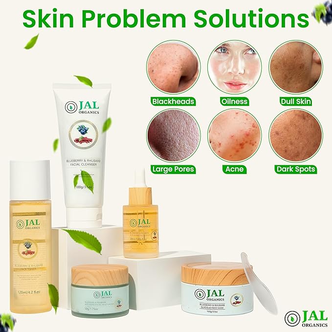 - ๐ฐ Maximize Your Skincare Investment with A Smart Choice: Investing in the Jal Organics 5-piece Blueberry Rhubarb Skincare system is not just a purchase, but a smart move. Enjoy a comprehensive skincare routine without breaking the bank, thanks to our perfect blend of high-quality ingredients and multiple products. Witness the transformative effects of our premium skincare system as you indulge in cost-effective skincare luxury.