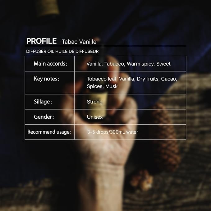 Tabac Vanille Diffuser Oil, Niche Fall/Winter Scent, Tobacco Leaf, Vanilla, Spices, Musk Essential Oils Blend for Ultrasonic Diffuser (.33 oz/10 ml)