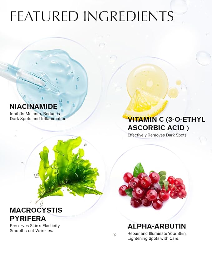 - Revitalizing Formula: Unleash the potential of our professional spot serum, enriched with potent components like 3-o-ethyl ascorbic and alpha-arbutin. Enjoy a refreshed, moisturized, and rejuvenated complexion.
