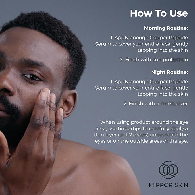 - How To Use - Use your MIRROR SKIN peptides serum for face twice daily, once in the morning and once at night. Apply enough to lightly cover your entire face, gently tapping into the skin. Feel free to pair with a sunscreen for face.