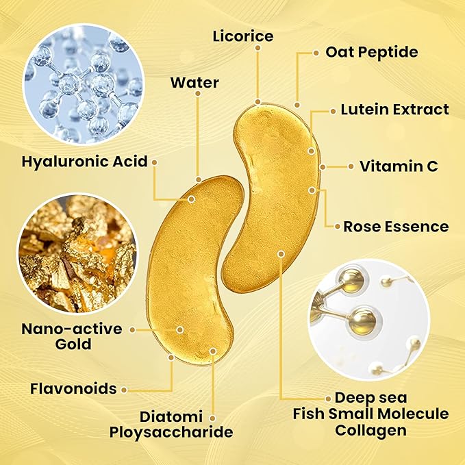- 40 PAIRS UNDER EYE PATCHES - In this pack you get 40 pairs of our Golden Glow Eye Mask for a complete treatment that lasts, to prevent the formation of wrinkles and 24K nano gold with a protective effect helps prevent your skin from sagging.