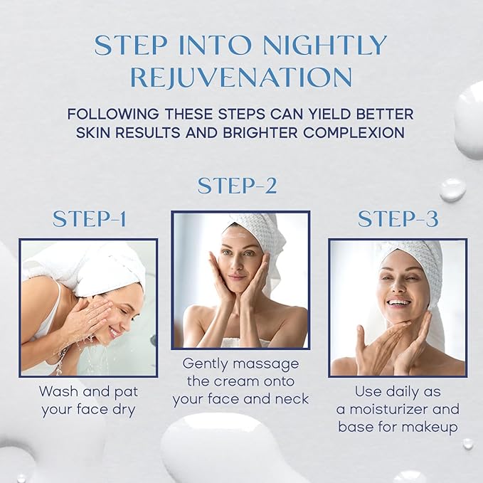 - EASY TO USE: Our Night cream is designed for effortless application and quick absorption. Simply apply a small amount to cleansed face and neck in the evening, gently massaging it in until fully absorbed. It is a convenient addition to your daily skincare routine.