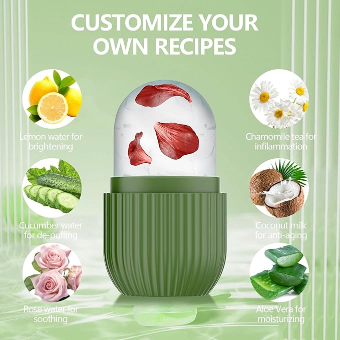 - Customize Preferences - Facial ice roller can enhance the skin care effect as per your creativity and customized formula according to your specific skin needs, such as lemonade for whitening, and coconut for improving skin. Even you can use a juicer to squeeze them into juice, then add water, essential oils, and roses to the ice tray.