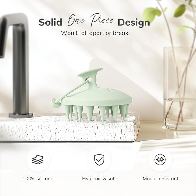 - Durable: Made from 100% food-grade silicone, our one-piece scalp massager is durable, eco-friendly, and safe. Unlike two-piece scalp brushes, it will never fall apart or break, ensuring you can achieve healthier hair and scalp for a long time