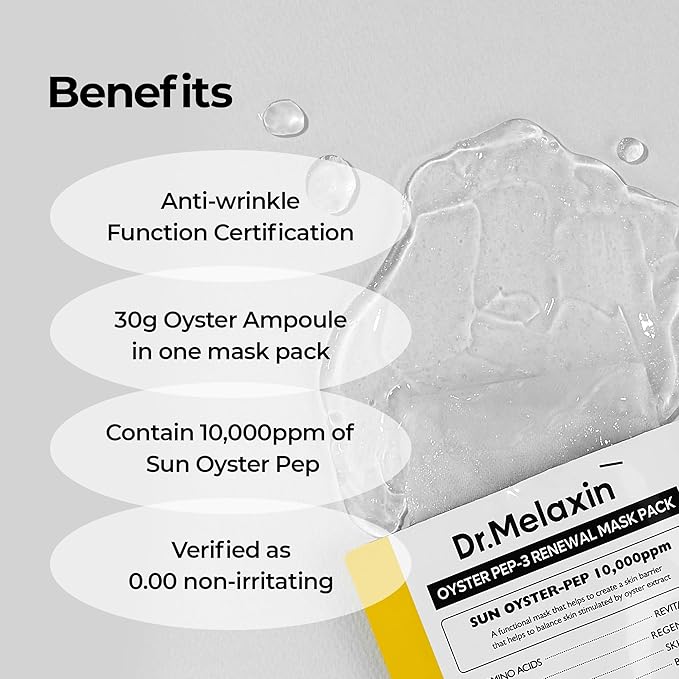 Oyster Pep3 Renewal Mask Pack for Anti Aging, Hydrating Face | Visibly Smooth and Glowy Skin, Korean Skincare, 5ea