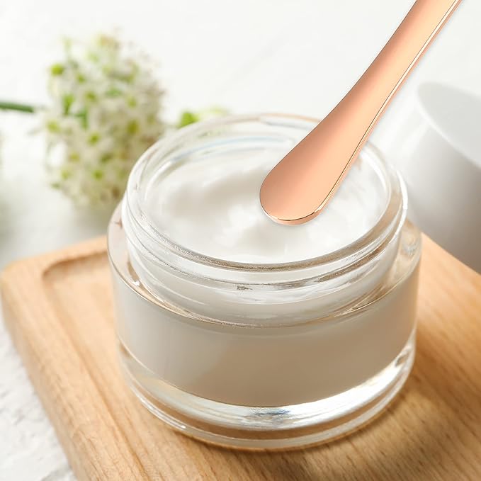 VOCOSTE 4 Pcs Makeup Spatula Mini Spoon, Eye Cream Massage Sticks Beauty Scoop, for Facial Cosmetic Face Cream, Zinc Alloy 2.32"x0.46", Rose Gold Tone