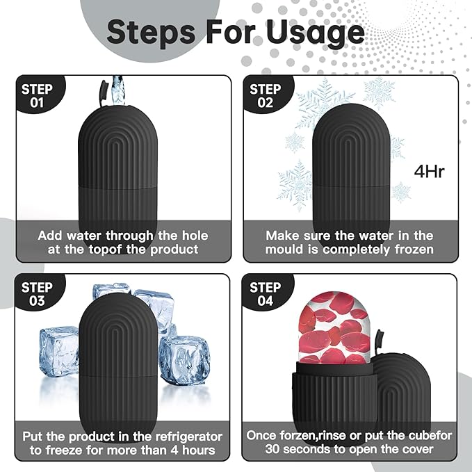 - 💚【Easy To Use】: Fill the ice roller massager mold with water, freeze it in the refrigerator for more than 4 hours, then soak it in water for 2-5 minutes, open the lid, and the ice mold is fully formed. Apply ice to the skin in circular motions every 30 seconds.