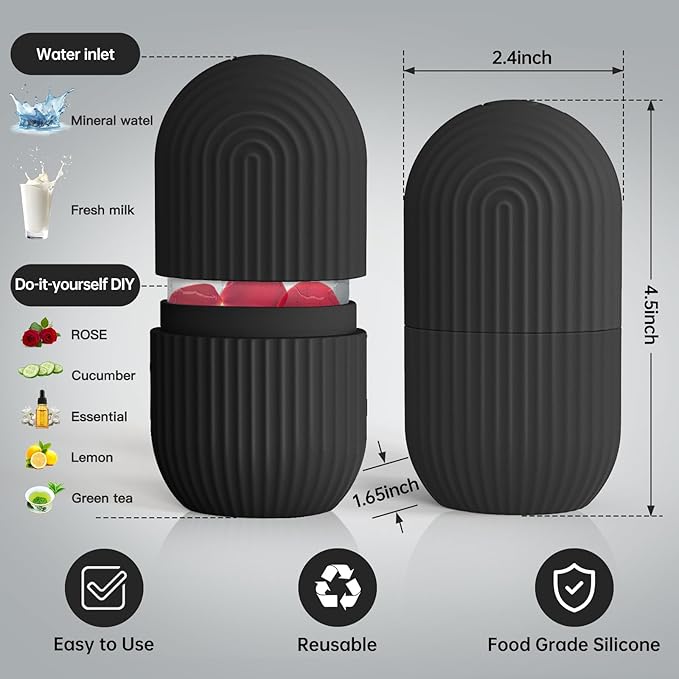 Ice Roller for Face and Eye,Ice Cube Roller Massager for Skin Women Care Tools, Naturally Conditioning De-Puff Eye Bags, Reduce Migraine Pain, Reusable Massage Silicone Ice Mold (Black)