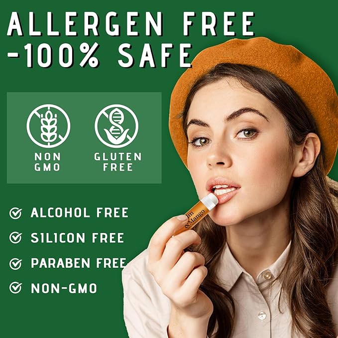 - Natural and Safe: The ingredients in natural lip balm bulk are Coconut Oil; Petrolatum; Paraffin; Soybean Oil; Beeswax; Cocoa Butter; Olive Oil; Vitamin E. All the ingredients are natural, absolutely safe and reliable. Our lip balms are free from common allergens such as gluten, dairy, making them safe to use even for sensitive lips. You can choose us with confidence