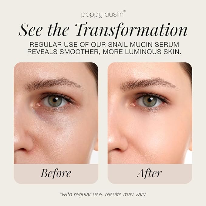 - Designed for All Skin Types - While our snail face serums for anti aging work best on dry and aging skin, it also nourishes oily or sensitive skin. Add it to your Korean skin care routine or even a simple regimen using Poppy Austin essentials.
