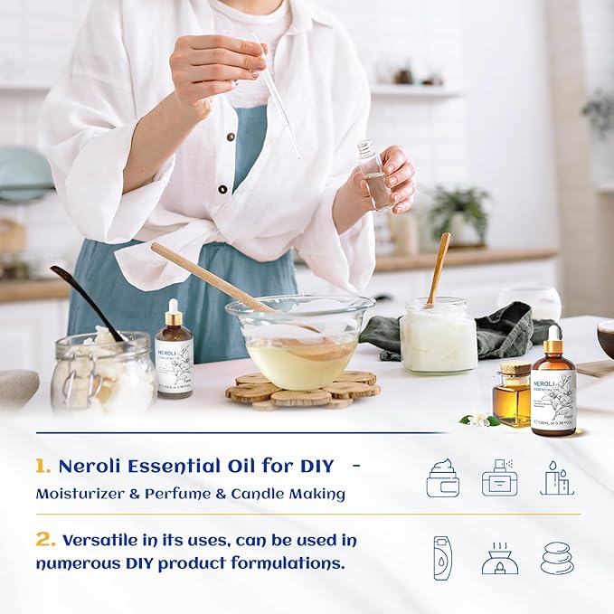 HIQILI Neroli Essential Oil 3.38 Fl Oz, Pure Natural Neroli Oil for Skin, Diffuser, Includes 10ML Travel Bottle - 100ML