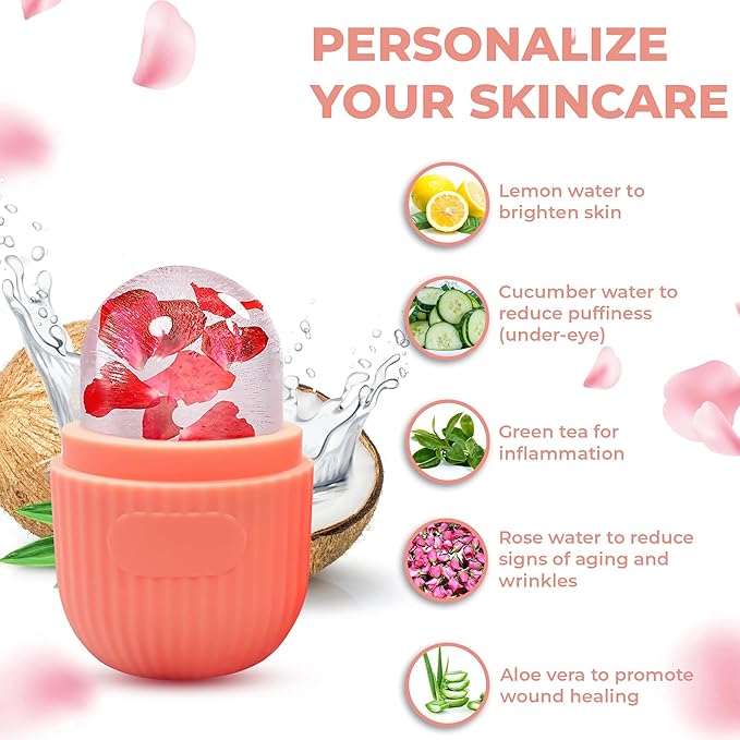 - ✅ VERSATILE COOLING EFFECT - The ice roller for face can be customized with various ingredients like cucumber water, green tea, and coconut milk to suit your skin's needs, such as brightening, inflammation reduction, and promoting skin glow, making it perfect for all skin types