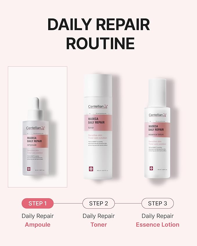Centellian 24 Madeca Daily Repair Ampoule (Daily Soothing, 1.69fl oz) - Soothing & Hydrating Facial Serum for Sensitive Skin, Skin Barrier Repair & Fast Absorption, Korean Skin Care
