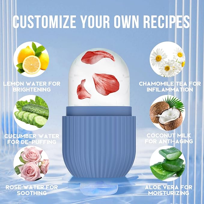 - Customize Preferences - Facial ice roller can enhance the skin care effect as per your creativity and customized formula according to your specific skin needs, such as lemonade for whitening, and coconut for improving skin. Even you can use a juicer to squeeze them into juice, then add water, essential oils, and roses to the ice tray.