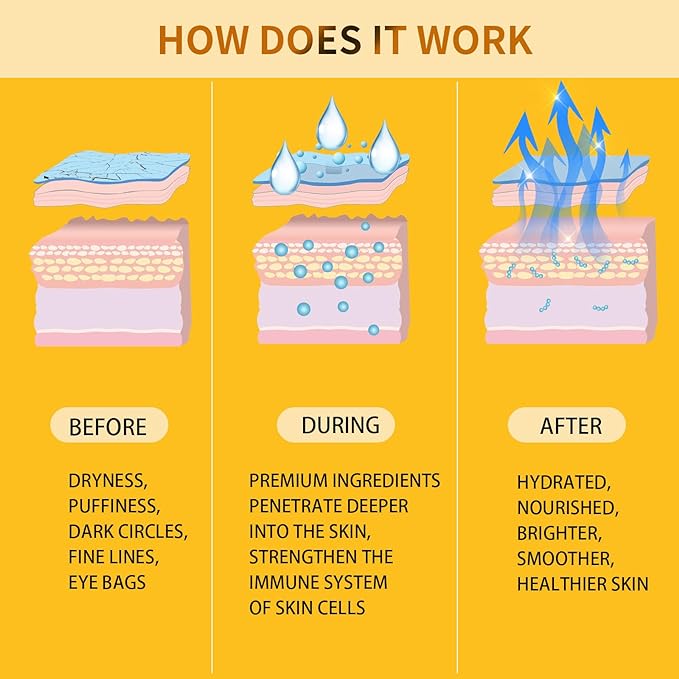 - Tips: Store the under eye masks in a cool, dry place at temperatures between 0℃/32℉ and 45℃/113℉, and shield it from direct sunlight. Extreme heat or cold can harm the product. For optimal results, we recommend using the eye patches for wrinkles daily. Placing the gel eye pads in the fridge for a short period before use can enhance the experience, but please refrain from freezing them.