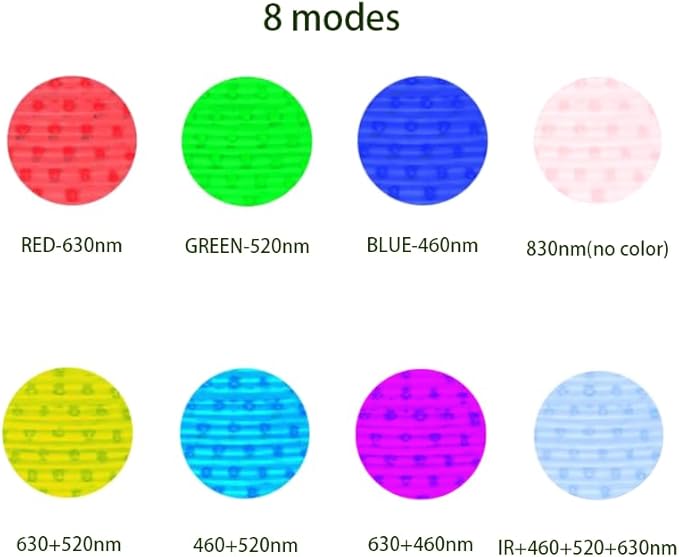 - 1.Comprehensive Light Therapy: Combines 7 clinically-studied LED wavelengths (Red, Blue, Green, Purple, Yellow, White) + Near Infrared Red Light for targeted skin concerns—anti-aging, acne reduction, collagen boost, inflammation relief, hydration, and cellular repair.